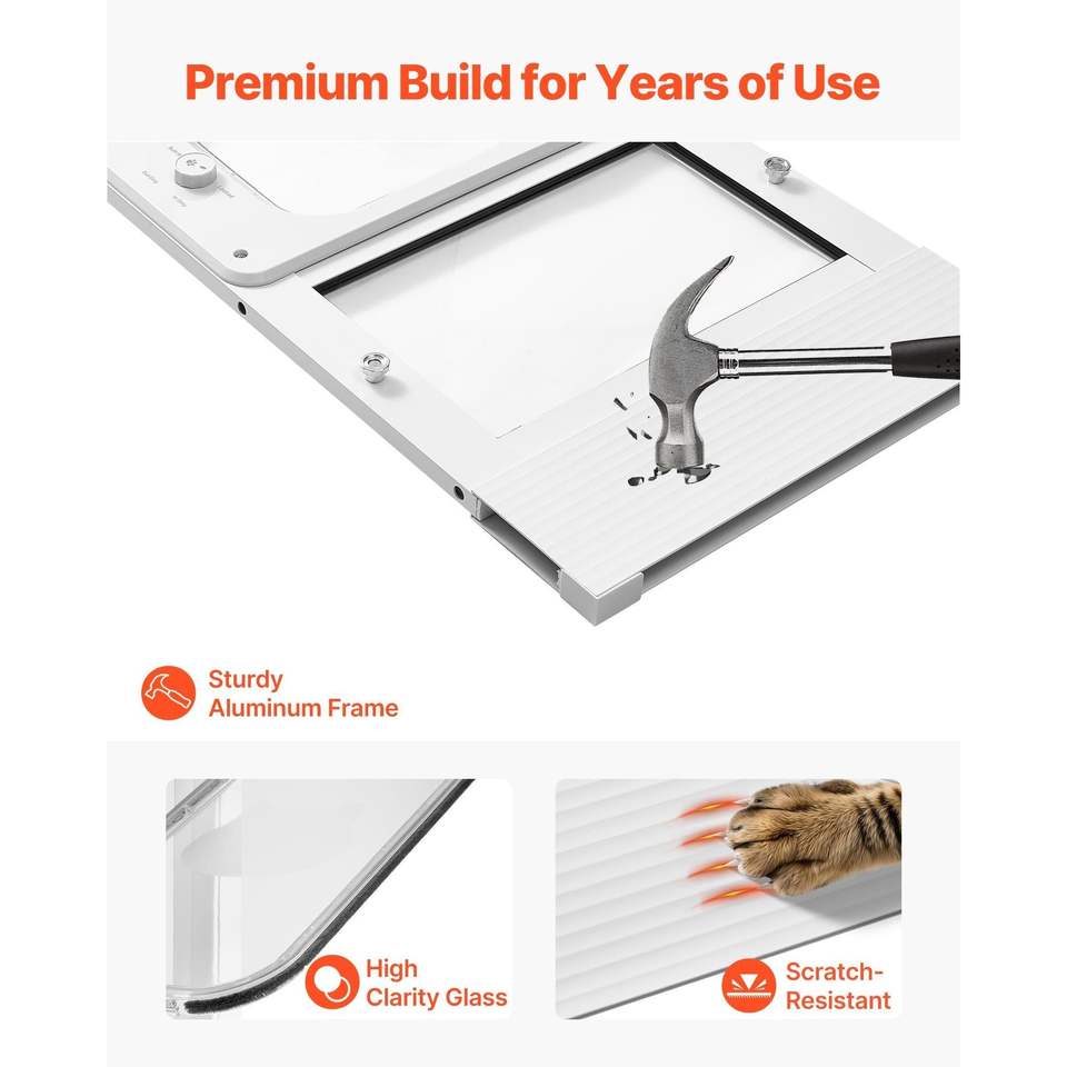 Porte pour chat en verre haute transparence avec cadre en aluminium, fermeture magnétique, 4 modes de verrouillage sécurisés, fournitures pour petits animaux