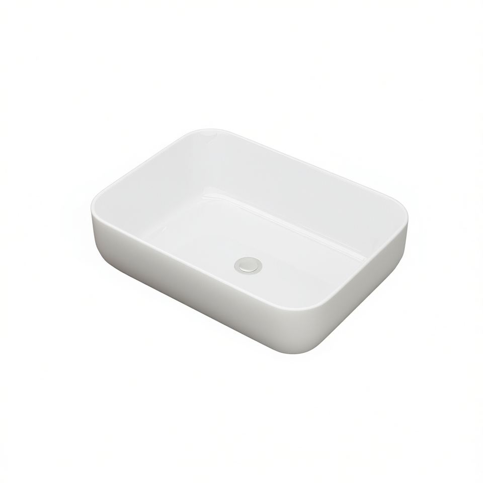 Vasque de salle de bain rectangulaire en céramique blanche 20x15 pouces, finition brillante, design minimaliste, montage sur plan