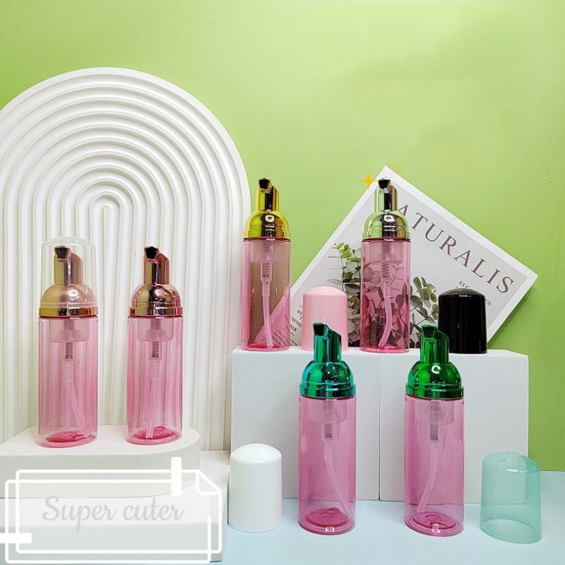 Flacons pompe en plastique blancs, transparents et roses, mini format voyage, pour savon moussant, nettoyant visage et mains, mousse.