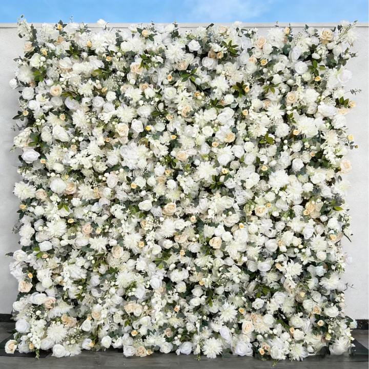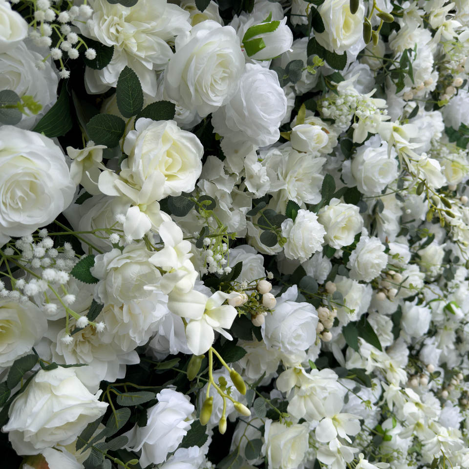 Nom:729775631413Mur de fleurs artificielles à base de tissu blanc