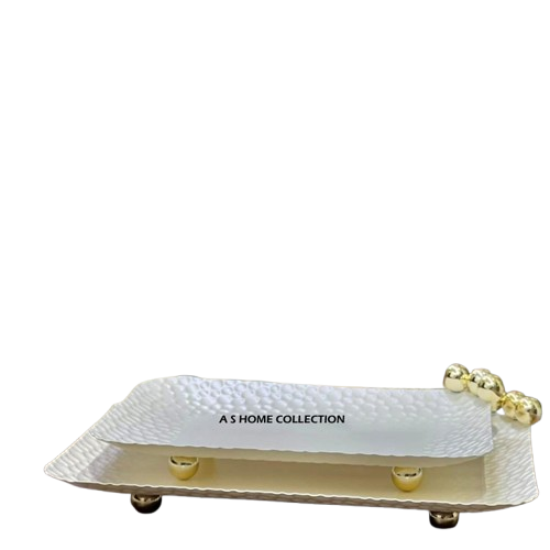 Plateau de service en métal martelé de qualité export, couleur blanche, pour mariage et fête, provenant du fournisseur à bon prix
