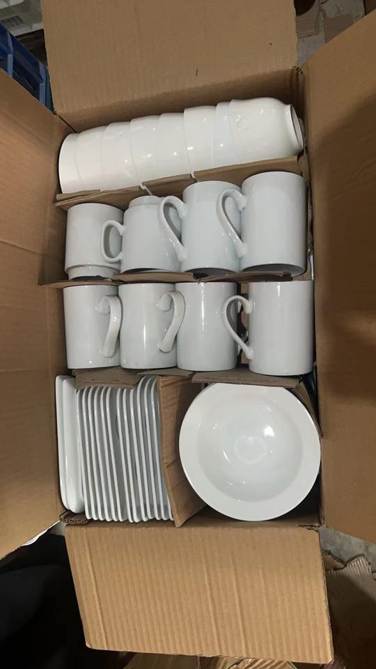 Nom du produit:Carton d'approvisionnement à prix abordable pour usage domestique, comprenant des assiettes et des bols en porcelaine.