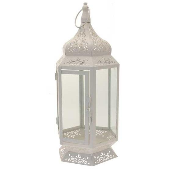 Lanterne en fer de couleur blanche de haute qualité à la main de concepteur en gros bougeoir classique élégant lanterne décorative en métal