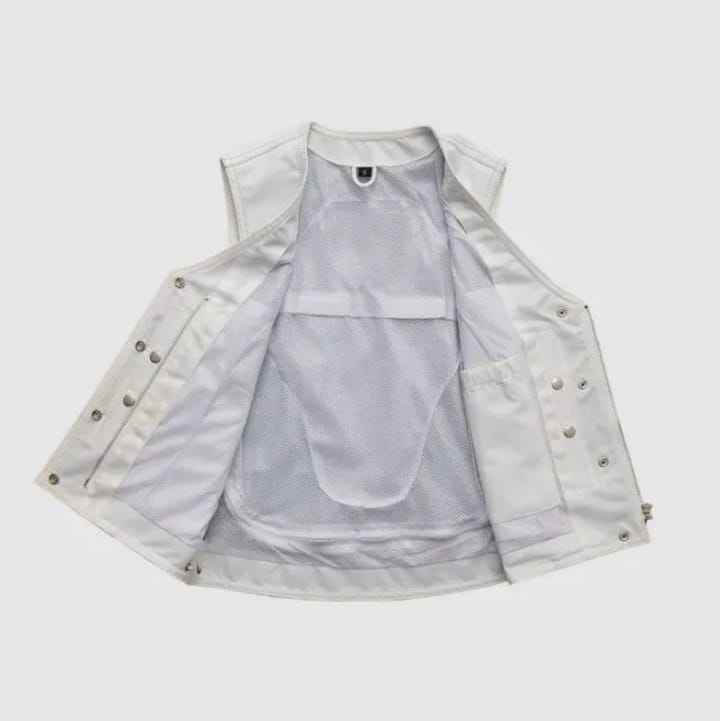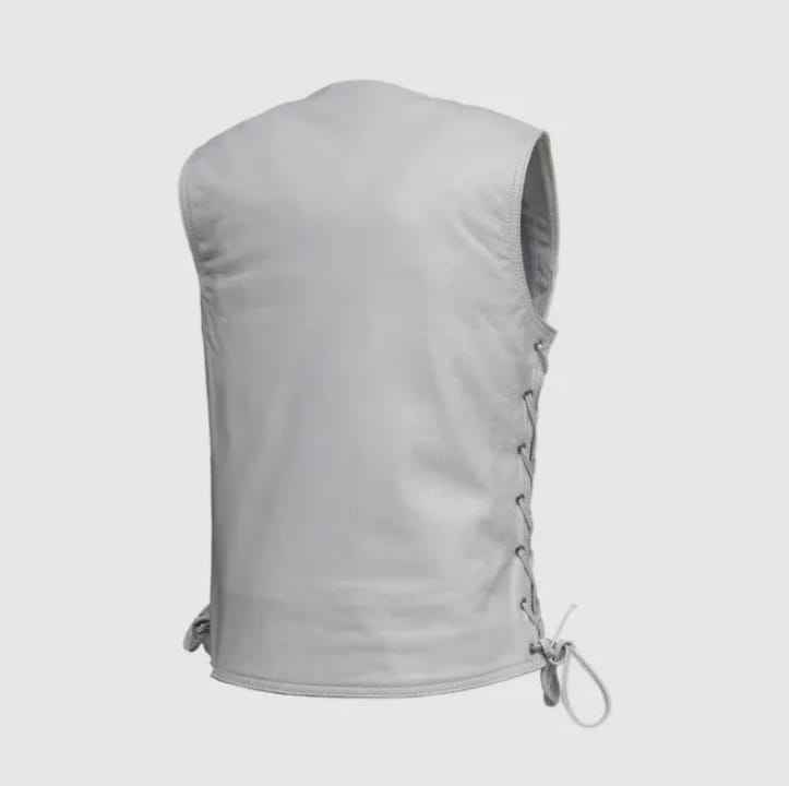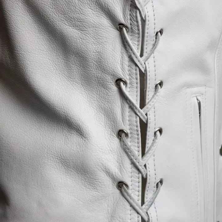 Gilet en cuir blanc de luxe avec logo personnalisé, design original, nouveau style, vêtements de motard, gilet en cuir pour vente en ligne.