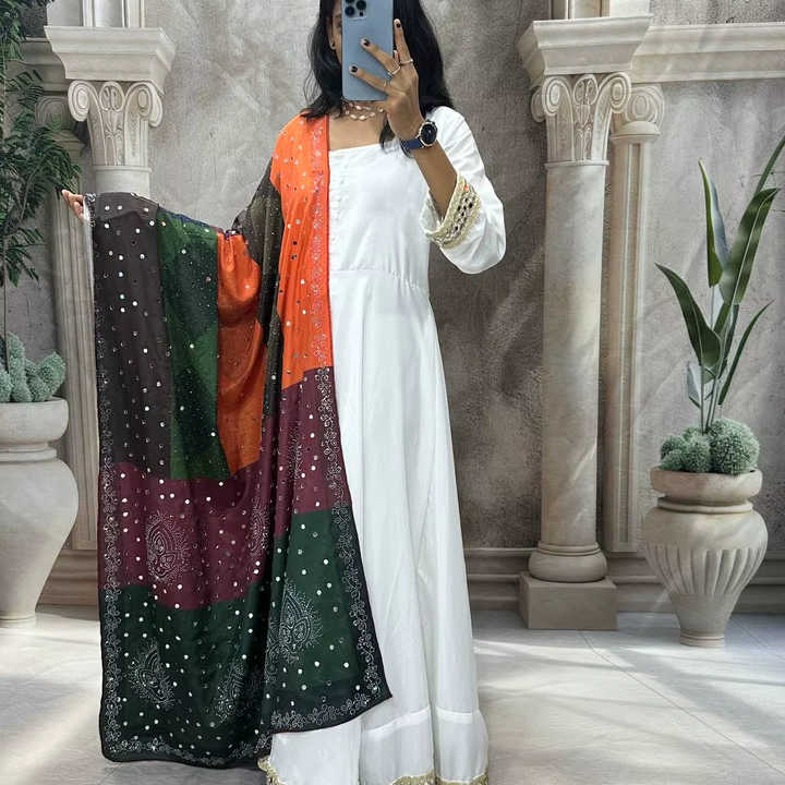 Robe Anarkali en tissu de crêpe de soie naturelle, brodée, moderne, attrayante, à séchage rapide, pour les fêtes, 3 pièces, couleur blanche