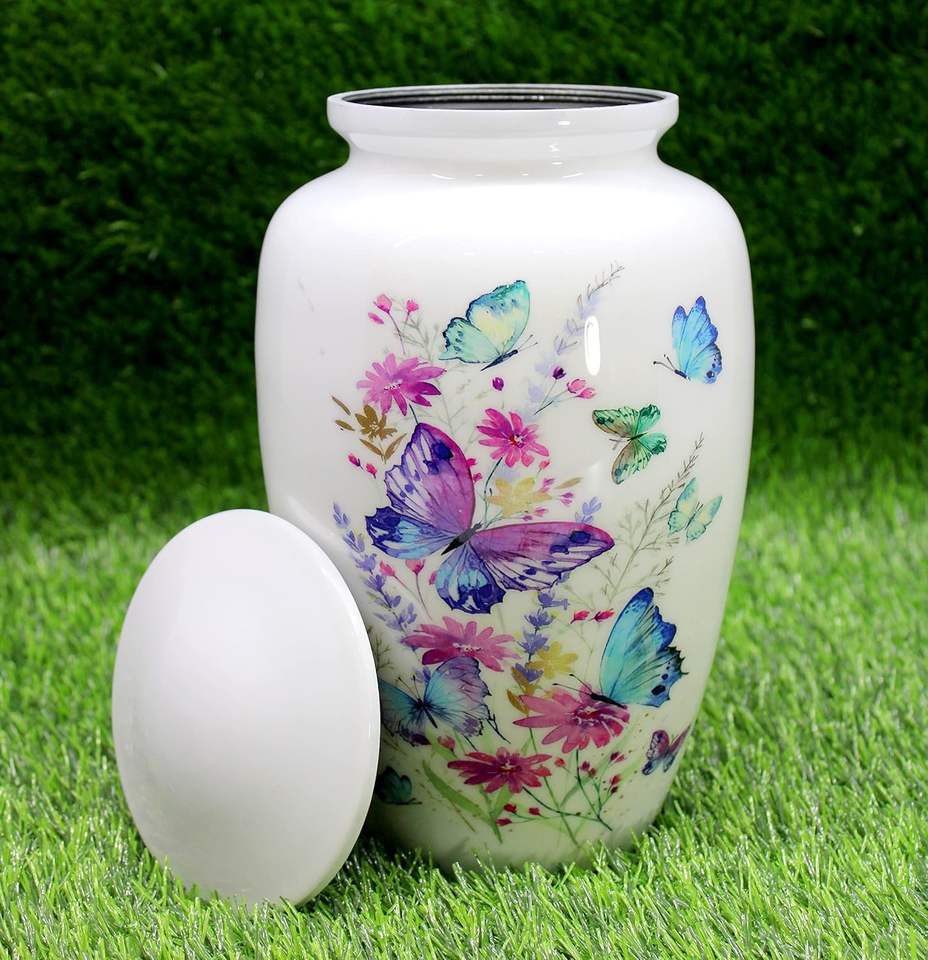 Pot de récipient blanc urne de crémation urnes papillon standard pleine taille pour cendres souvenir pour cendres adulte femme taille personnalisée