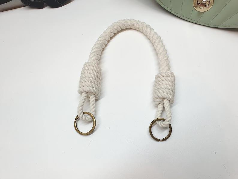 Poignée de sac en corde de coton blanc avec anneaux en métal Sangle de sac à main minimaliste et durable
