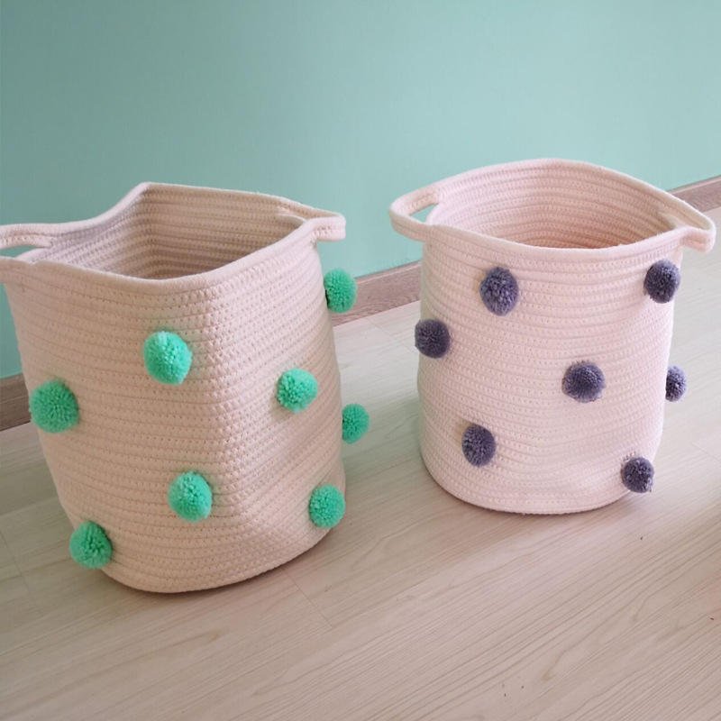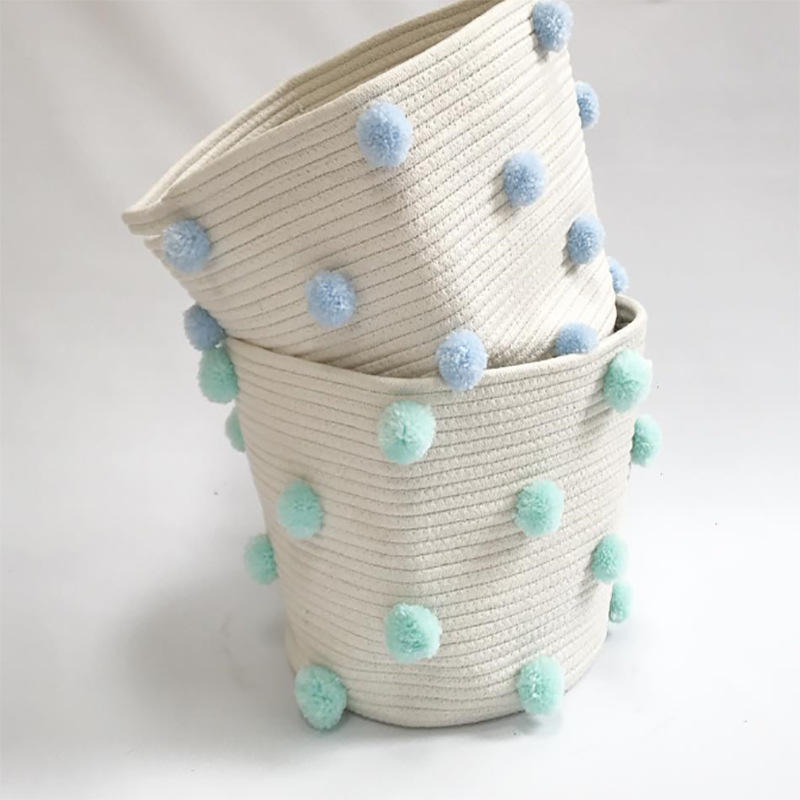 Paniers en corde de coton blanc pour rangement avec pompon décoration salle de bains petits paniers tissés pour organiser panier décoratif en tissu