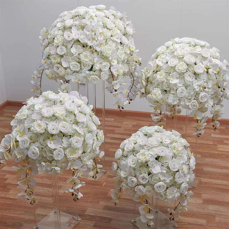 Boule de fleurs artificielles blanches crème, ornement de table, décoration florale, décoration de mariage