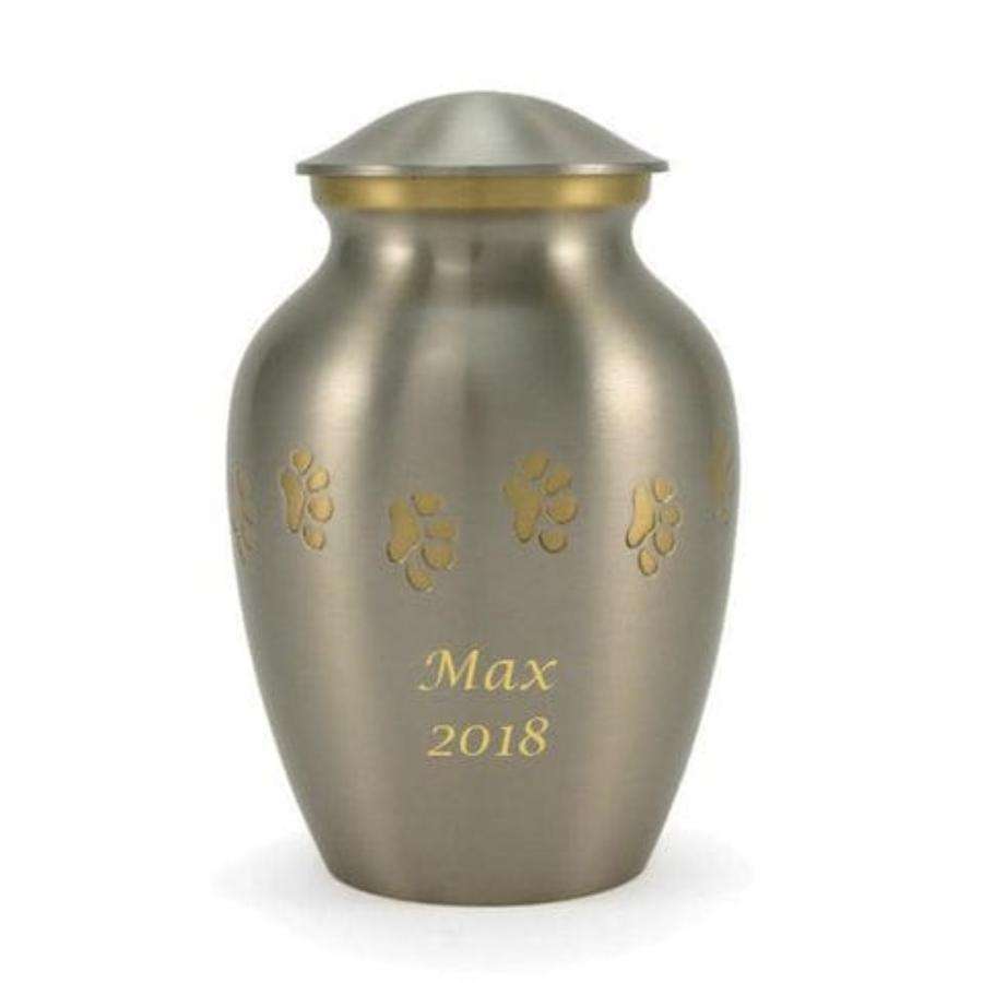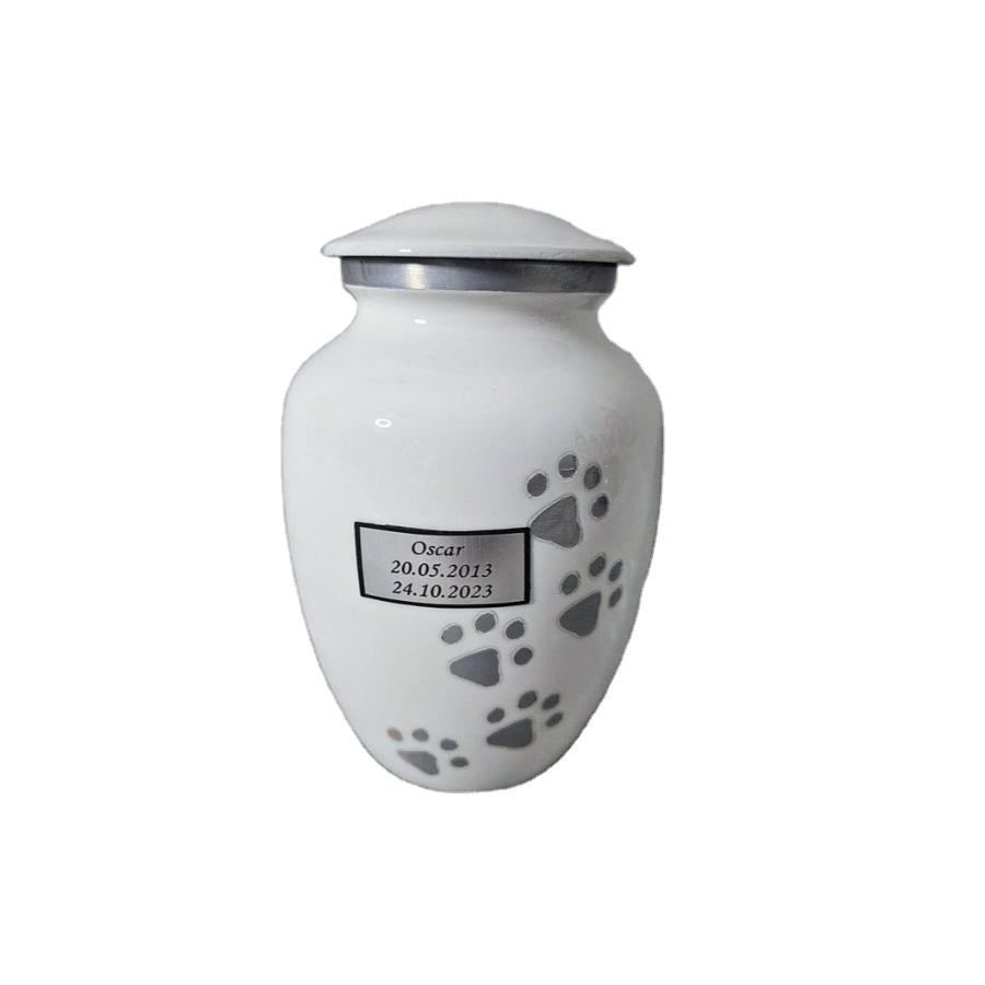 Urne de crémation blanche Pawprint Design Dernières urnes de crémation pour animaux de compagnie Fournitures funéraires Cendres d'animaux Souvenir Petite urne en métal pour l'enterrement
