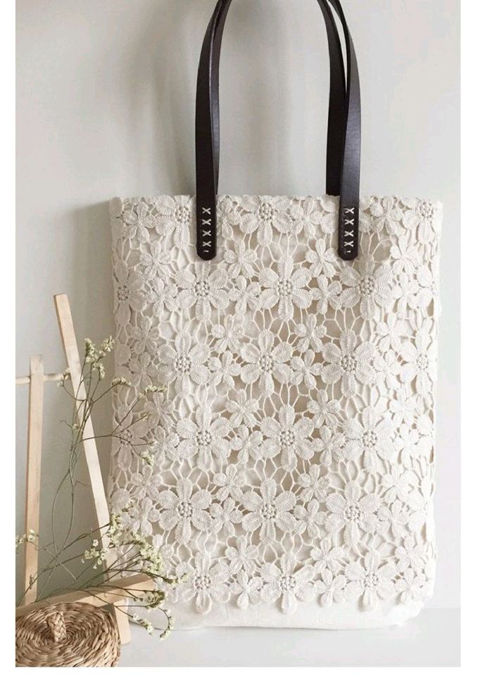 Nom du produit:Sac fourre-tout blanc à motif floral crocheté