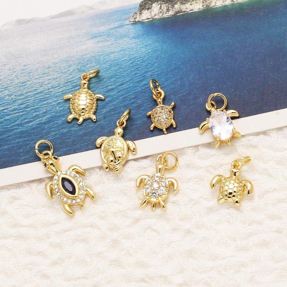 Cristal blanc petite tortue porte-bonheur breloques pour Bracelet cuivre porte-clés sac à main breloque fabrication de bijoux fournitures chma501