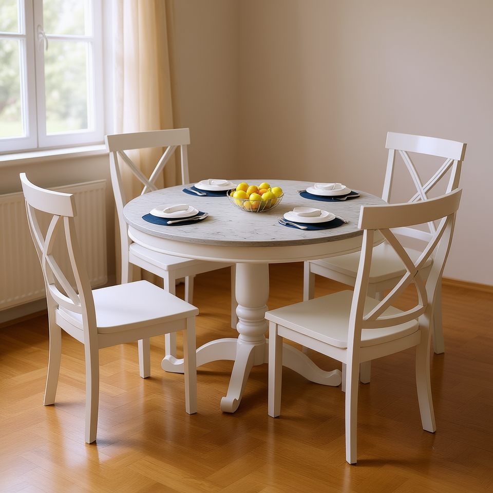 Ensemble table et chaises de salle à manger blanches, 5 pièces, style traditionnel en bois à dossier croisé, pour cuisine et mobilier de maison