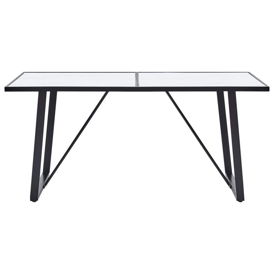 Table à manger blanche avec motif marbré et structure noire