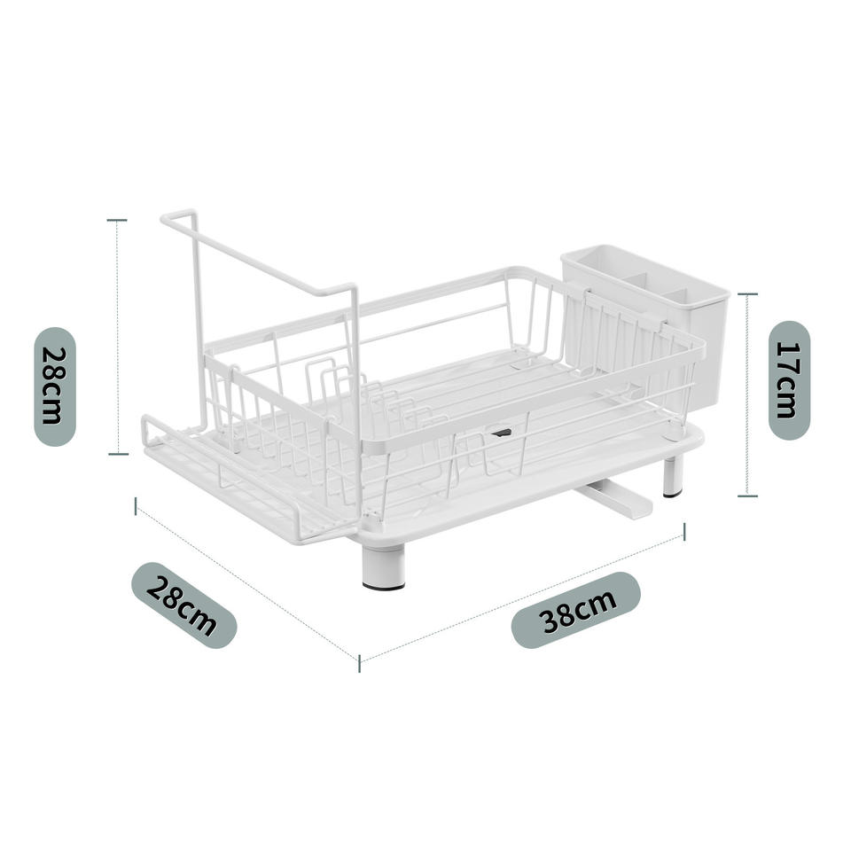 Égouttoir à vaisselle blanc avec plateau 38 cm, taille L, support de rangement multifonctionnel pour ustensiles et couverts