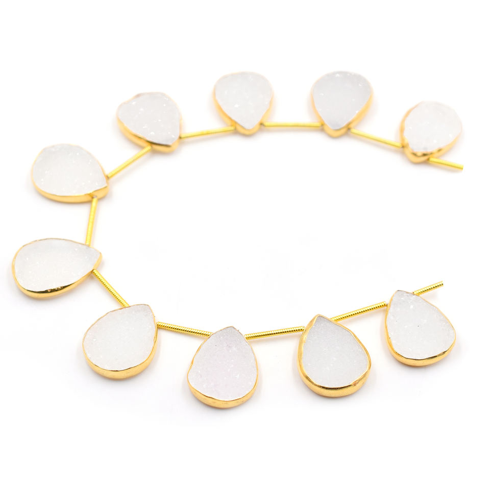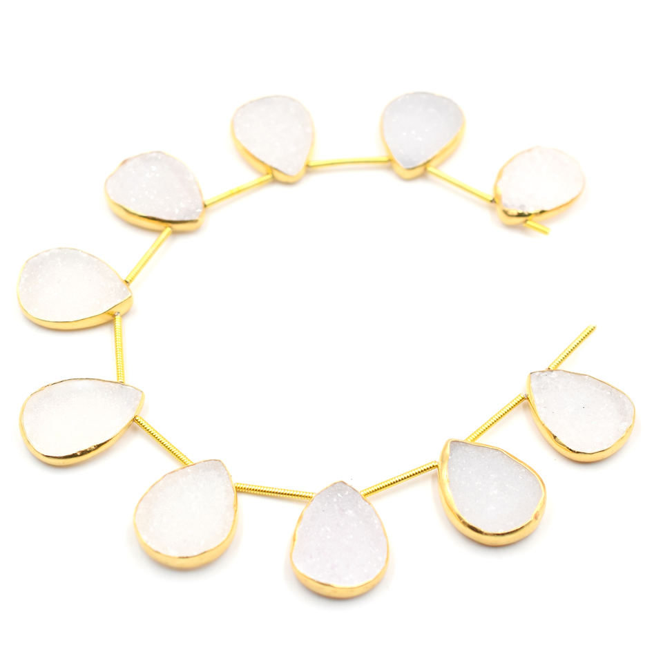 Product Name:White Druzy Gold Plated Top Side Drilled 10 Beads Strand