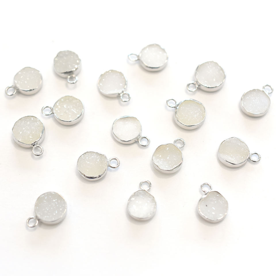 Nom du produit:Pendentif plaqué argent avec lunette en argent de forme ronde Druzy blanc