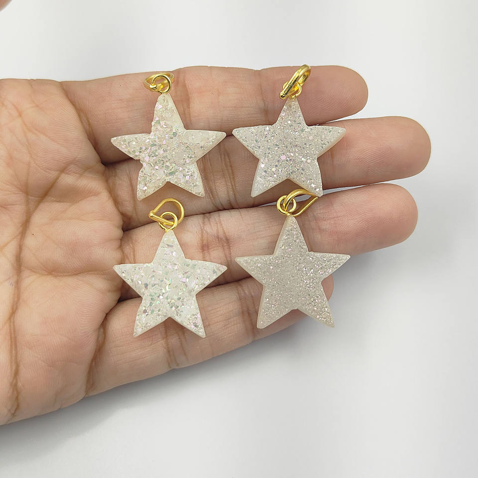 White Druzy Star Shape Pendant Gold Plated Star Charm Necklace for Women Natural Druzy Gemstone Pendant Jewelry