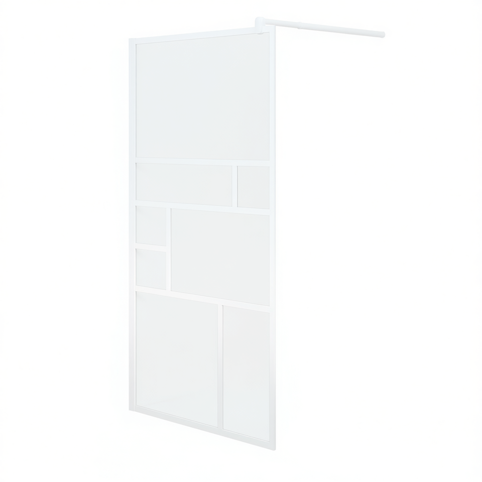 Paroi de douche en verre ESG blanc avec cadre, design minimaliste, porte coulissante, 45,3 x 76,8 pouces