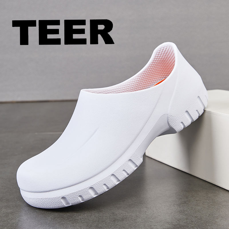 Chaussures de travail, d'hôpital, de salle de bain, de cuisine, de chef, unisexes, toutes saisons, avec semelle intermédiaire en EVA blanche, doublure en caoutchouc, semelle extérieure résistante à l'huile, antidérapante