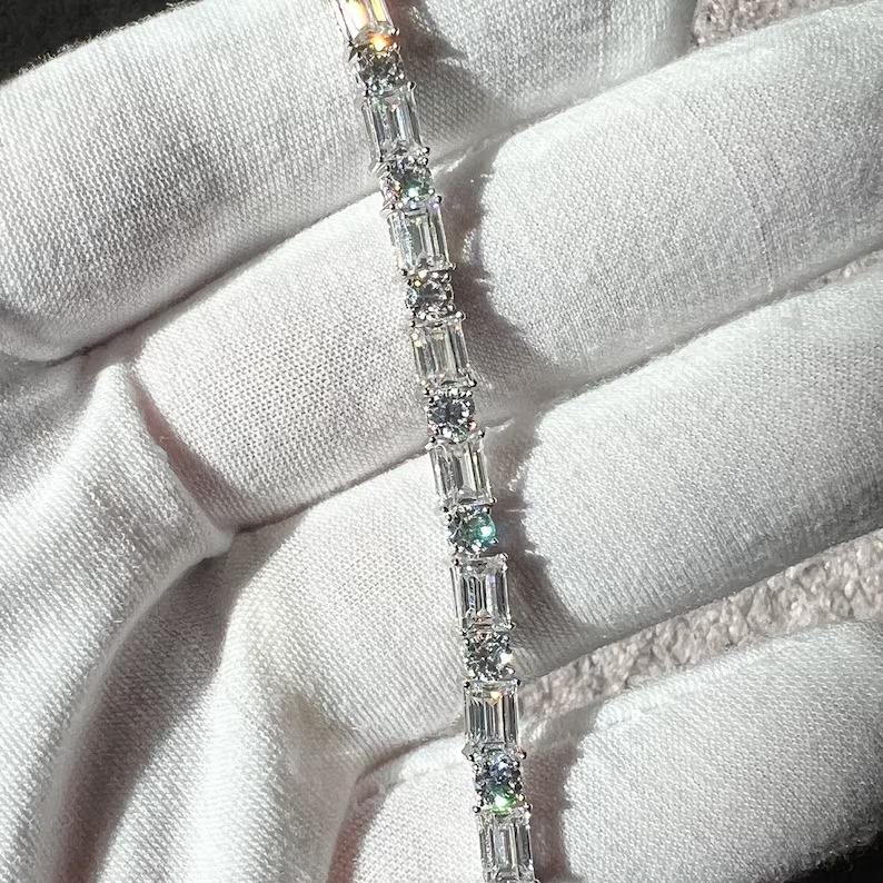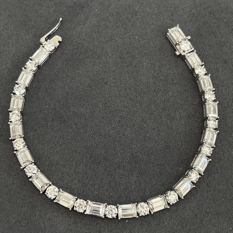 Bracelets en diamant Moissanite de forme fantaisie blanche coupe émeraude et forme ronde Beau bracelet en argent sterling cadeau pour hommes et femmes