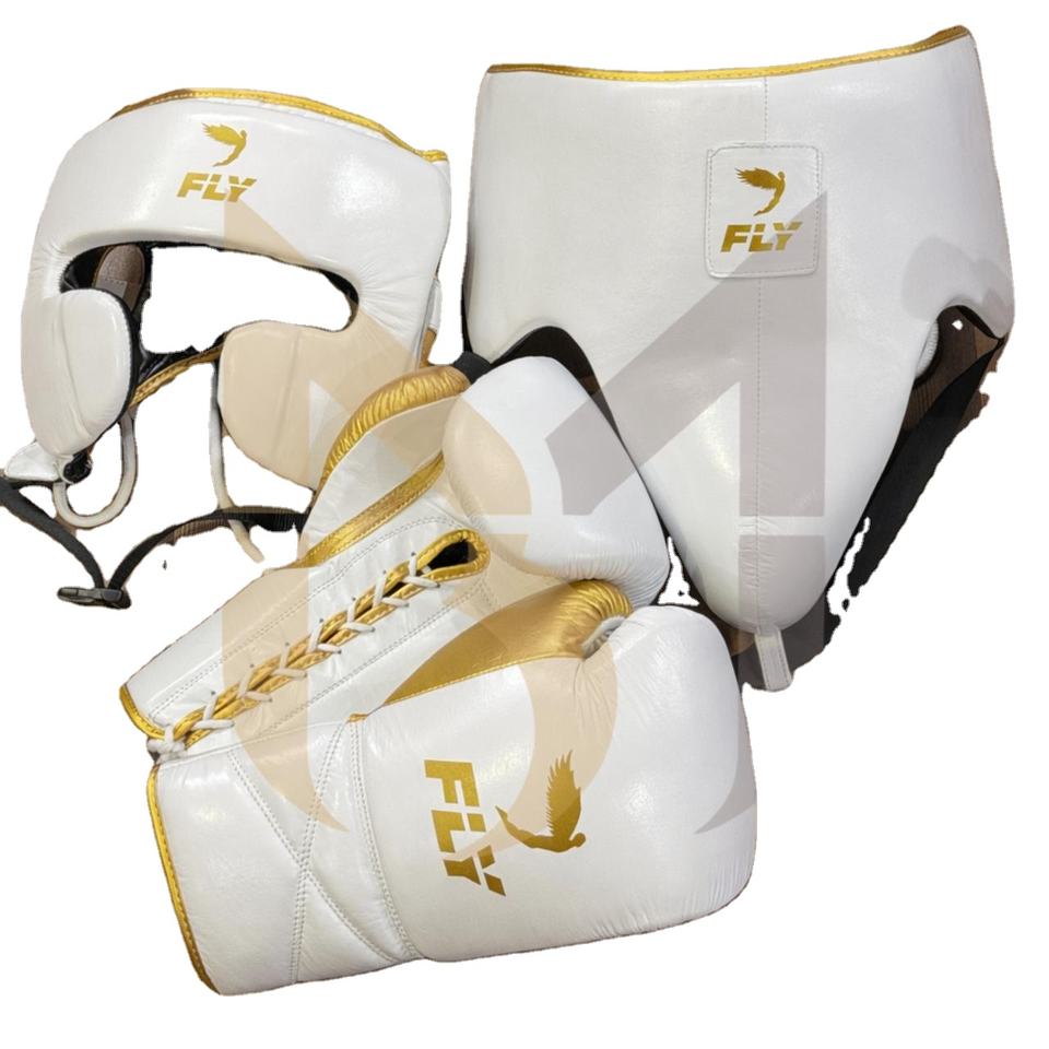 White Fly Boxing Set included Gloves, Headgear & Groin Guard OEM ODM Leather Boxing Sparring Kit for Fighters, Gym, & Wholesale