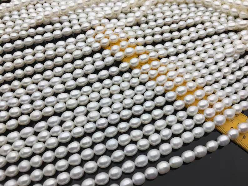 Perles de riz d'eau douce blanches 6-9mm en vrac pour la fabrication de bijoux, vente en gros, haute brillance