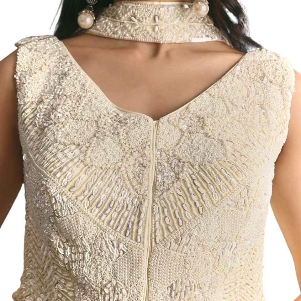 White Georgette Peplum Kurta Sharara Set with Beads and Sequins Designer Party Wear Womens Ethnic Wedding Outfit