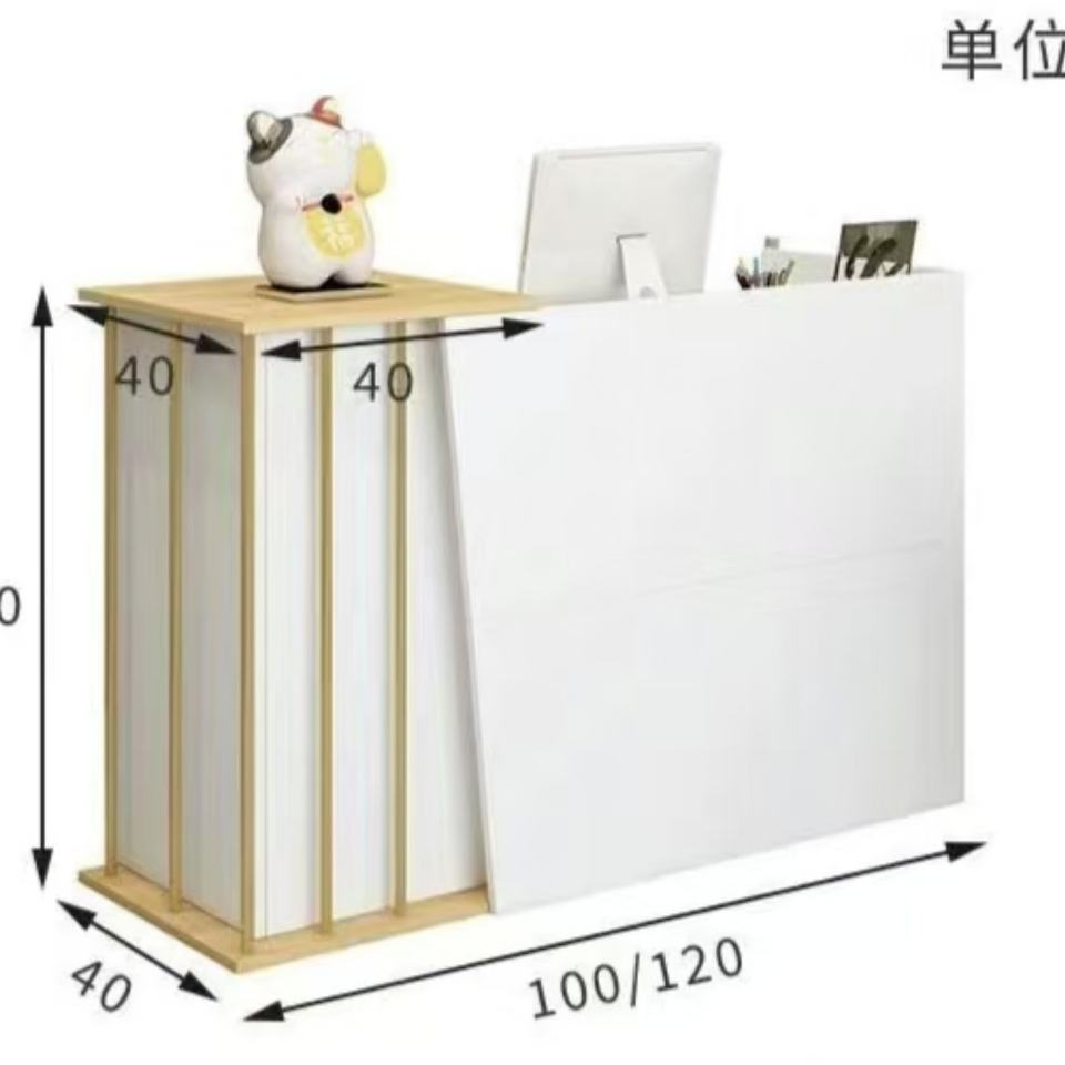 Comptoir de réception de luxe en or blanc, petit devant, design haut de gamme en bois, comptoir de réception de salon de beauté, comptoirs de caisse