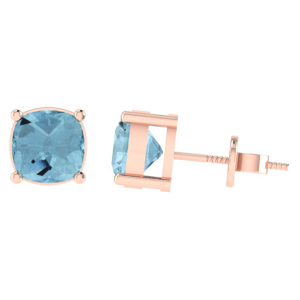 Boucles d'oreilles fines en argent sterling plaqué or blanc, pierre précieuse aquamarine de forme coussin de 6,4 mm, pierre de naissance de mars