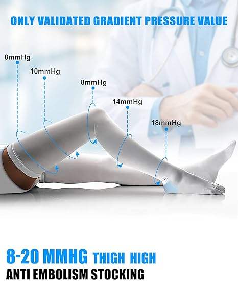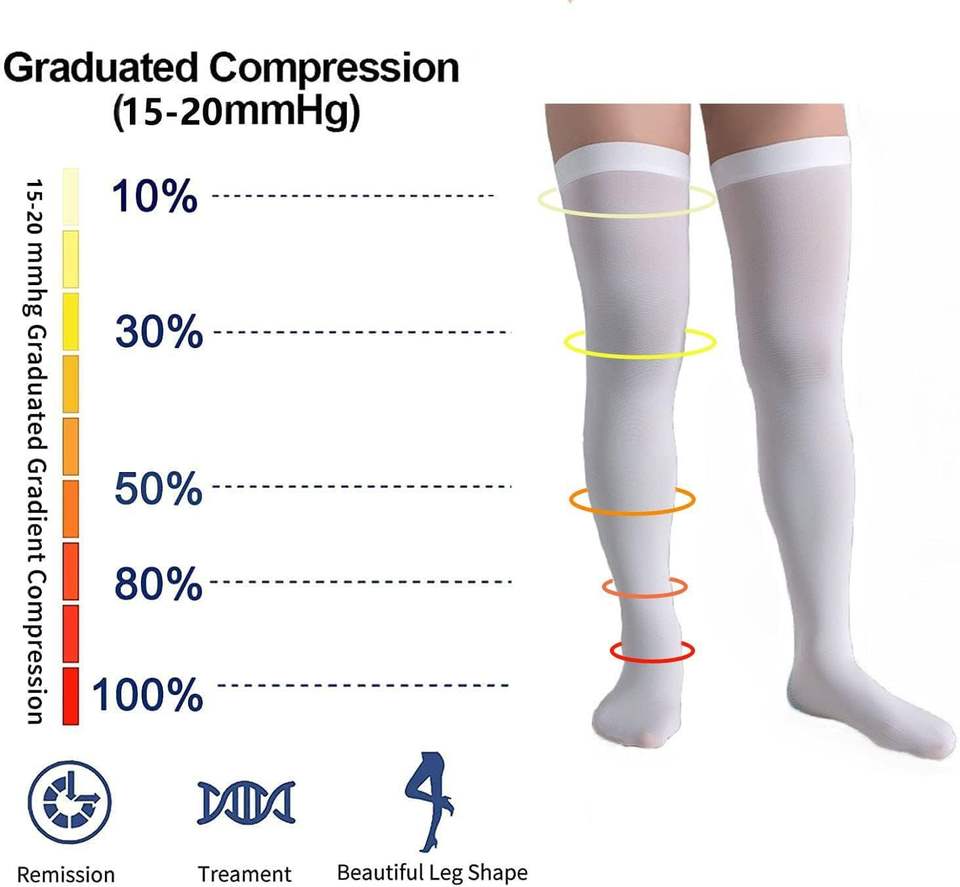 Chaussettes de compression à dégradé blanc 15-20 mmHg, hauteur cuisse, tube élastique, anti-thrombose, antibactériennes, chaussettes tricotées hauteur genou