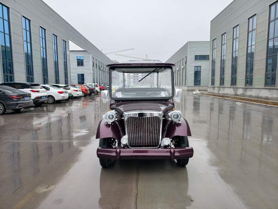 Bus et véhicule touristique électrique rétro blanc et vert pour sites touristiques, utilisation commerciale, voiture électrique vintage