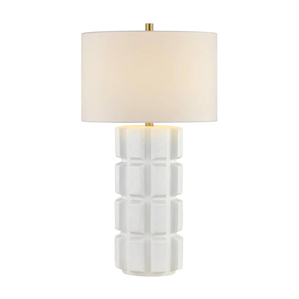 Lampe de table moderne minimaliste en céramique texturée à grille blanche | Éclairage élégant pour les chambres d'hôtel et les espaces de bureau