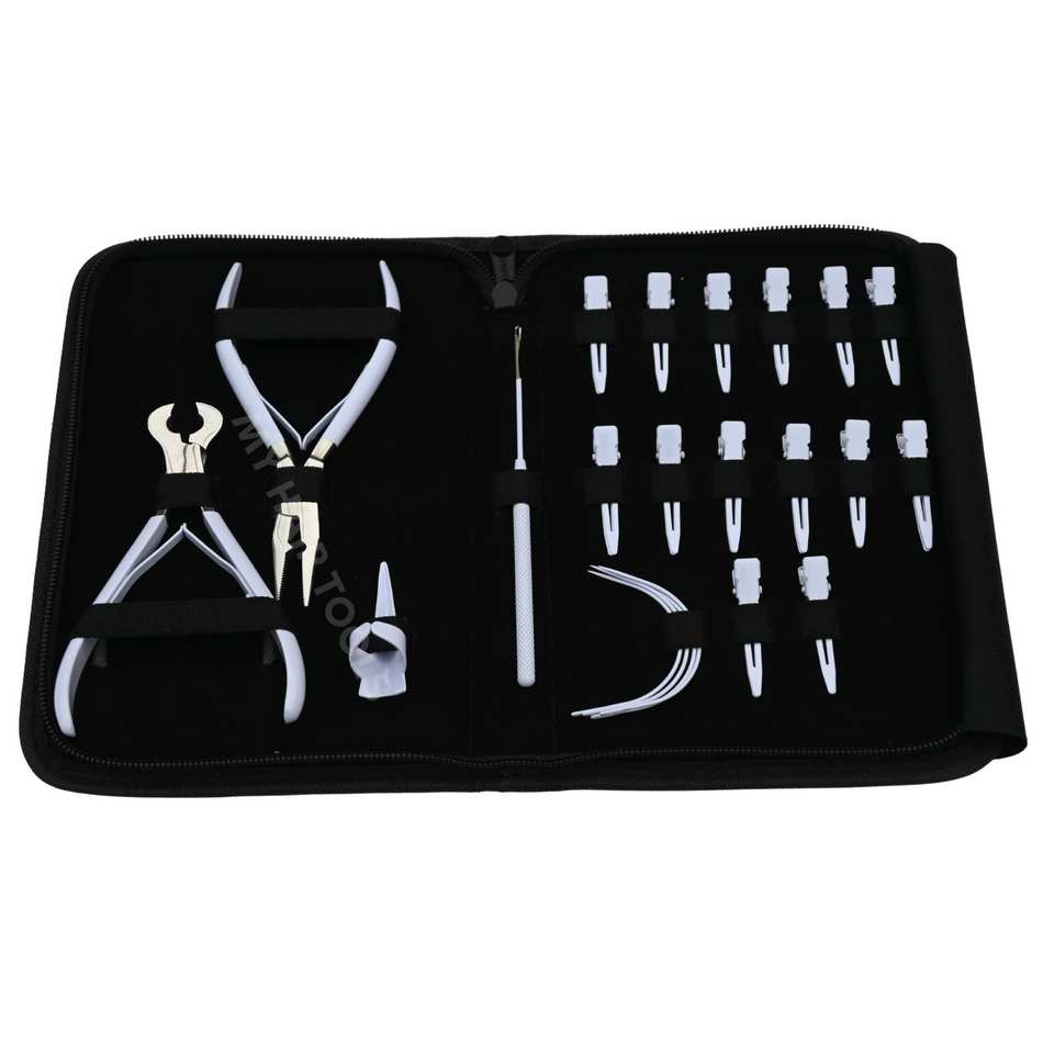 Nom du produit:Kit d'outils pour extensions de cheveux blancs avec pince à sertir pour micro-anneaux