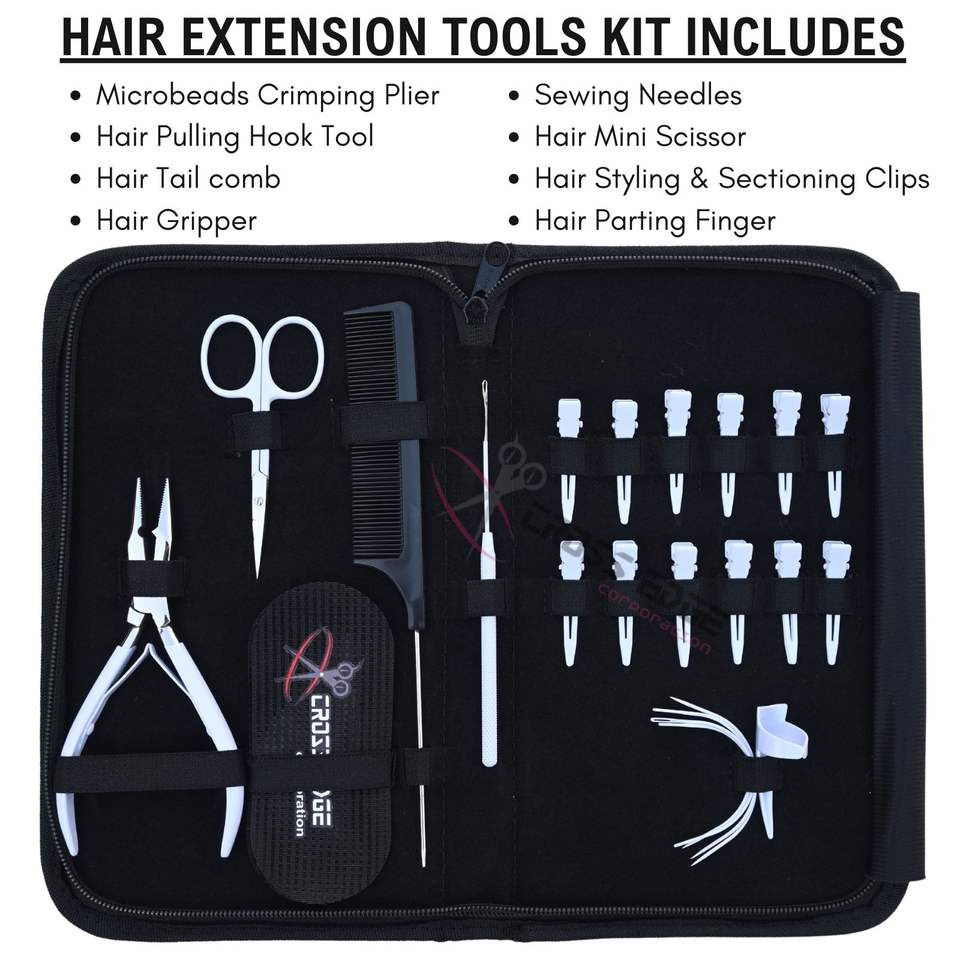 Kit d'outils pour extensions capillaires avec accessoires en acier inoxydable