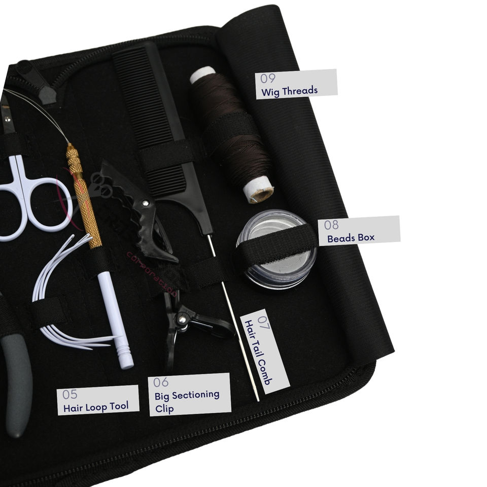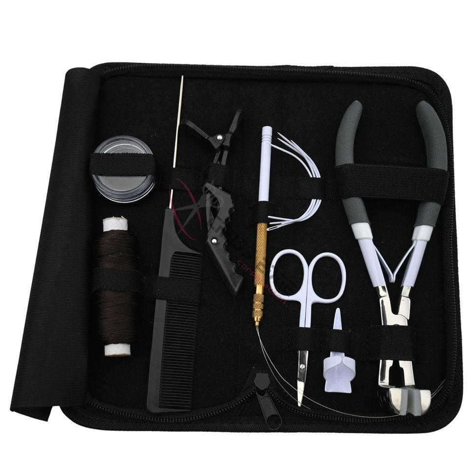 Utilisation:Extensions de cheveux, outils pour extensions de cheveux, kit d'application avec, Salon de coiffure de beauté, fils de perruque, grandes pinces, séparation des doigts, ciseaux, peigne