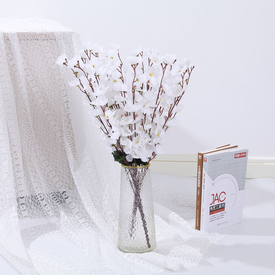 White Handmade High Quality Artificial Peach Cherry Blossom Branches Silk Flower Modern Graduation Wedding Christmas Home Table