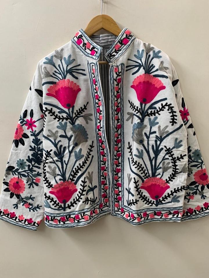 Product name:White Velvet Suzani Embroidered Short Jacket