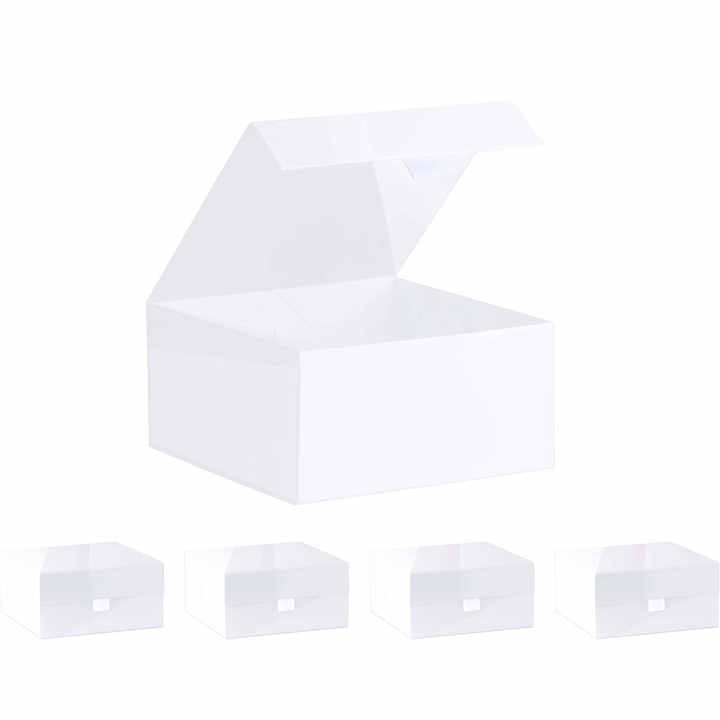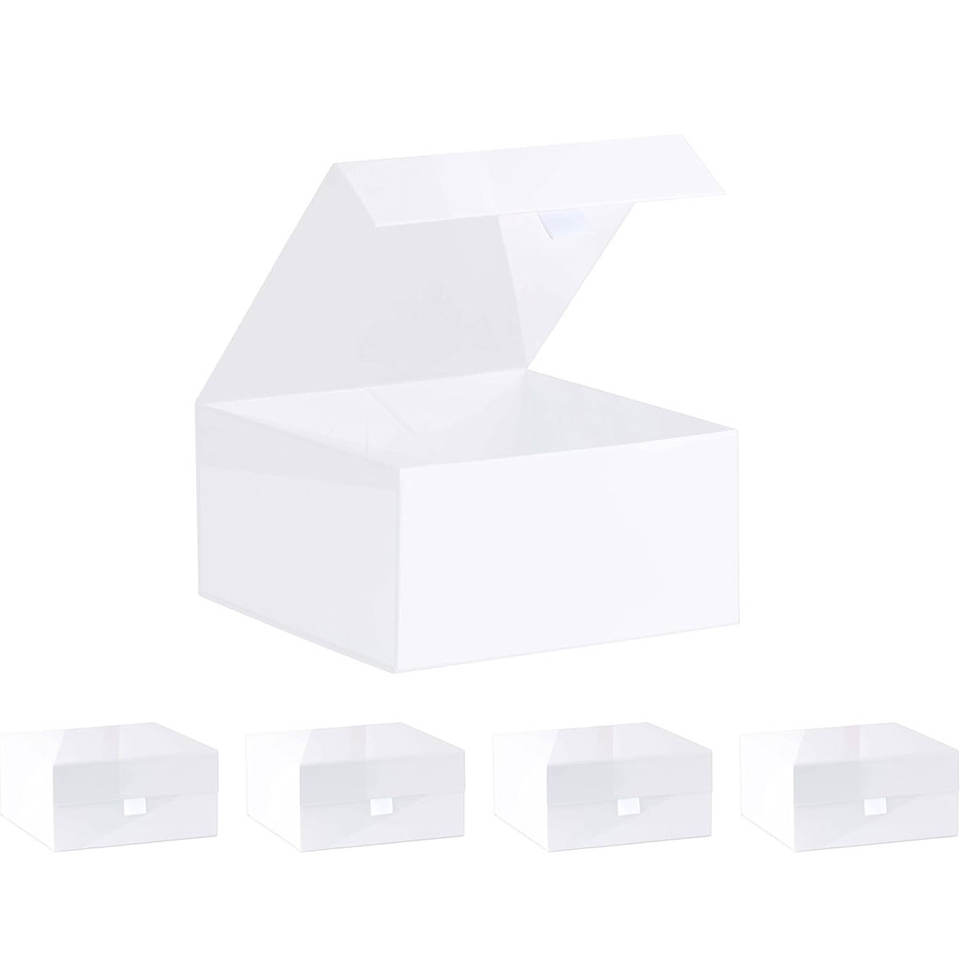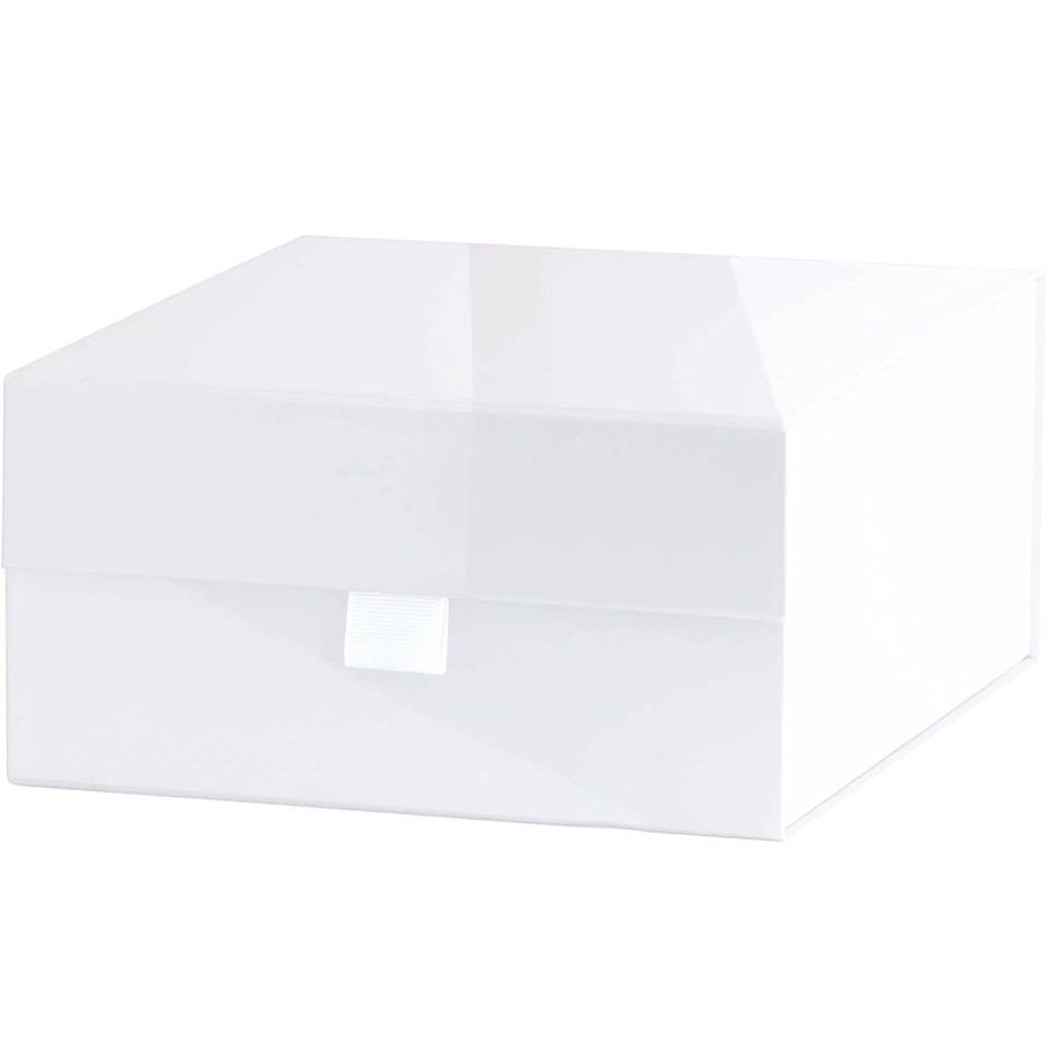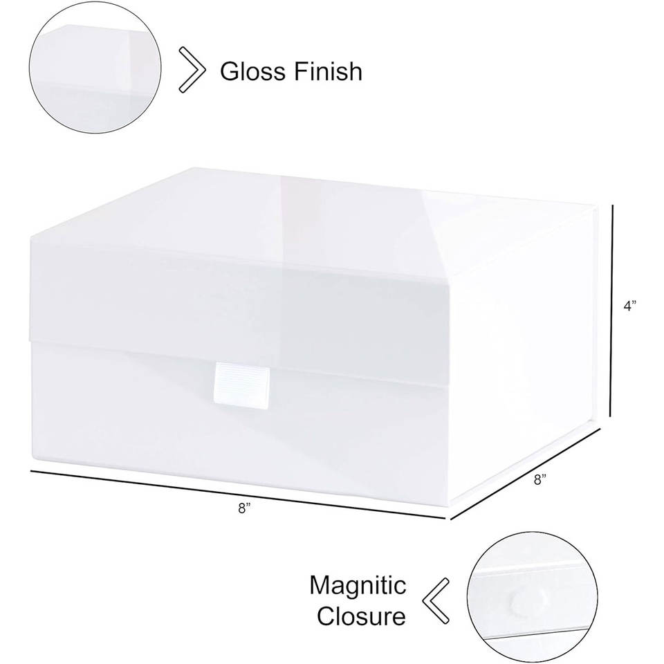 White Hard Gift Box With Magnetic Closure Lid 8"x8"x4" Square Favor Boxes With White Glossy Finish