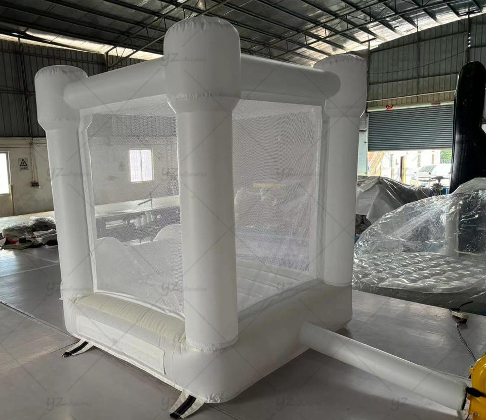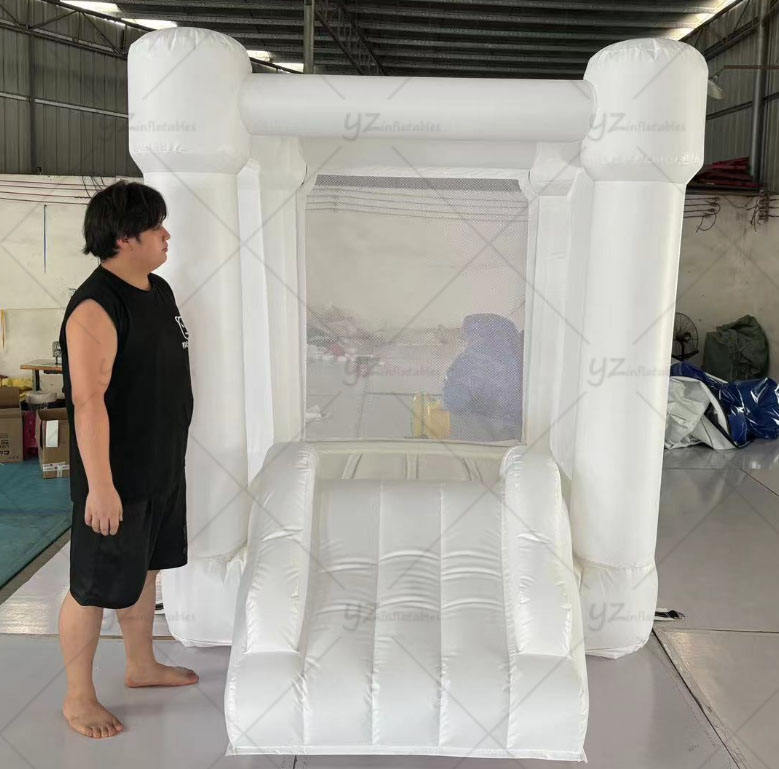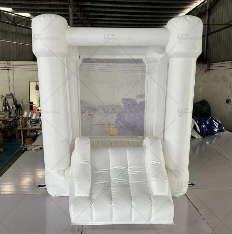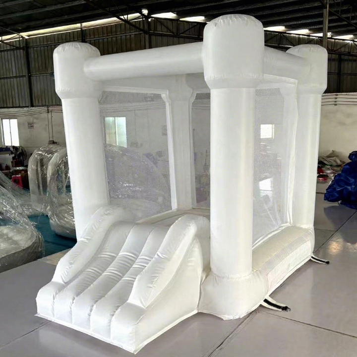 Château gonflable blanc pour fêtes en plein air, mariage, château gonflable avec toboggan pour location de châteaux gonflables