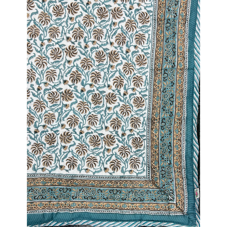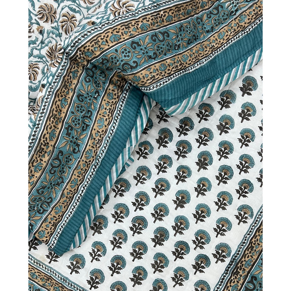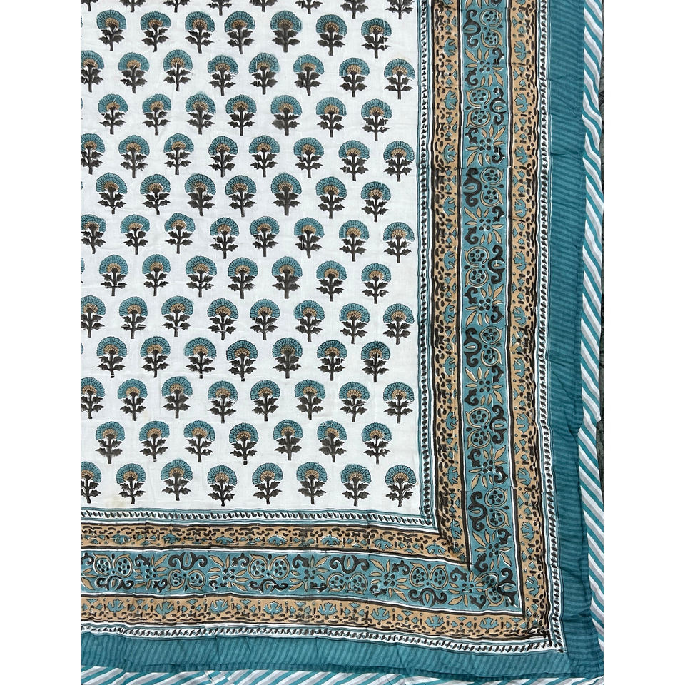 Couette double réversible en coton 100% imprimée à la main au motif floral blanc, style vintage, écologique, pour la maison