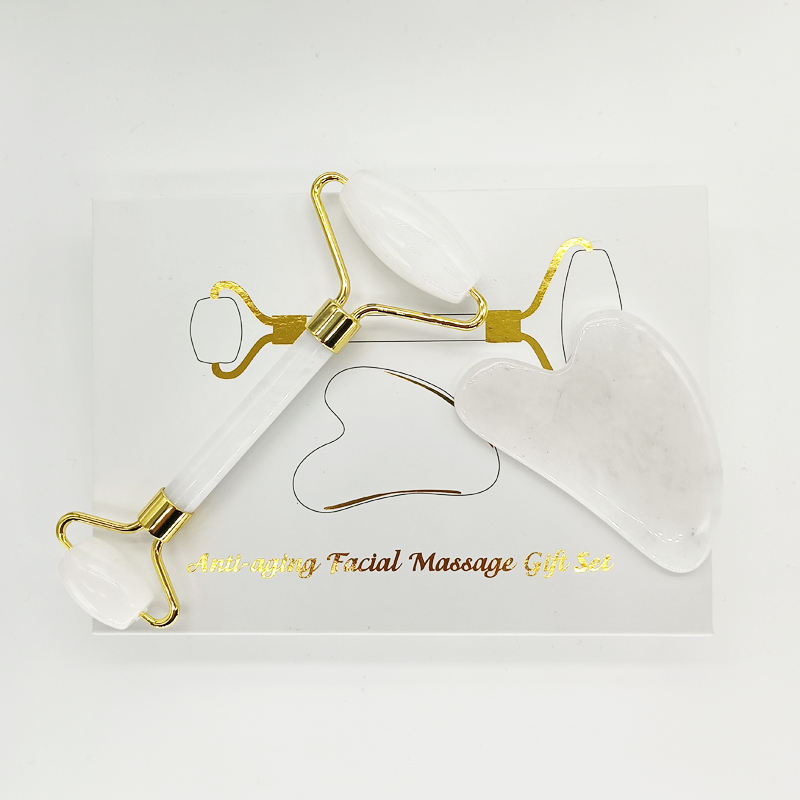 Ensemble de rouleaux de jade blanc et de Gua Sha avec boîte, rouleau de massage en jade blanc, Gua Sha
