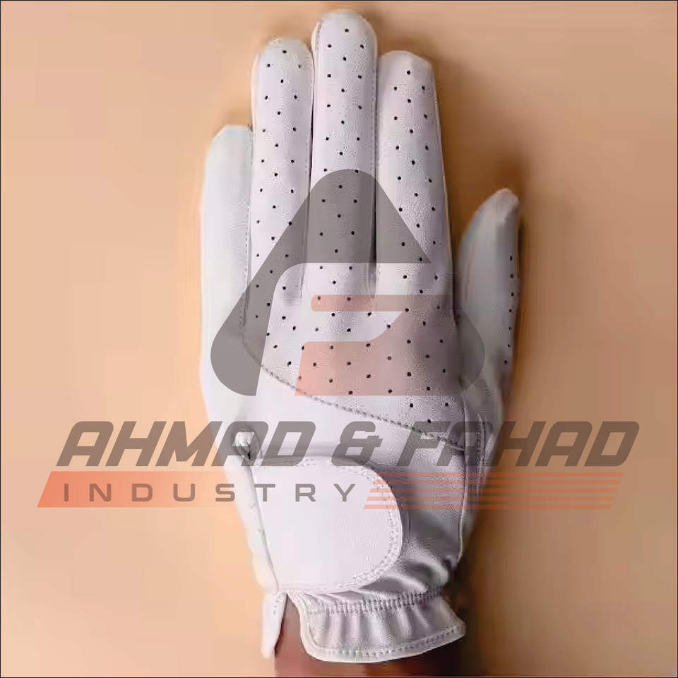 Custom Made White Junior Woman Golf Gloves Breathable Mesh Genuine Leather Hand Grips for Sports