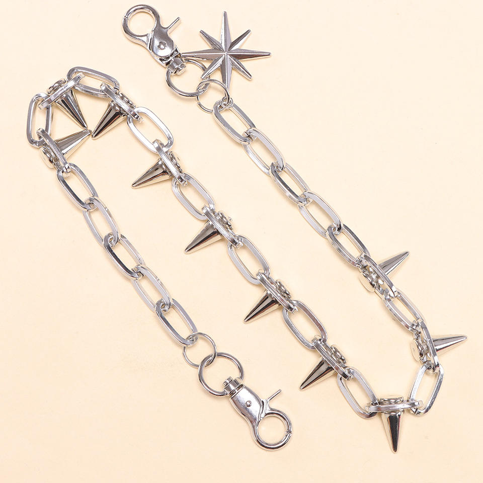 color:White K single-layer studded star-shaped trouser chain