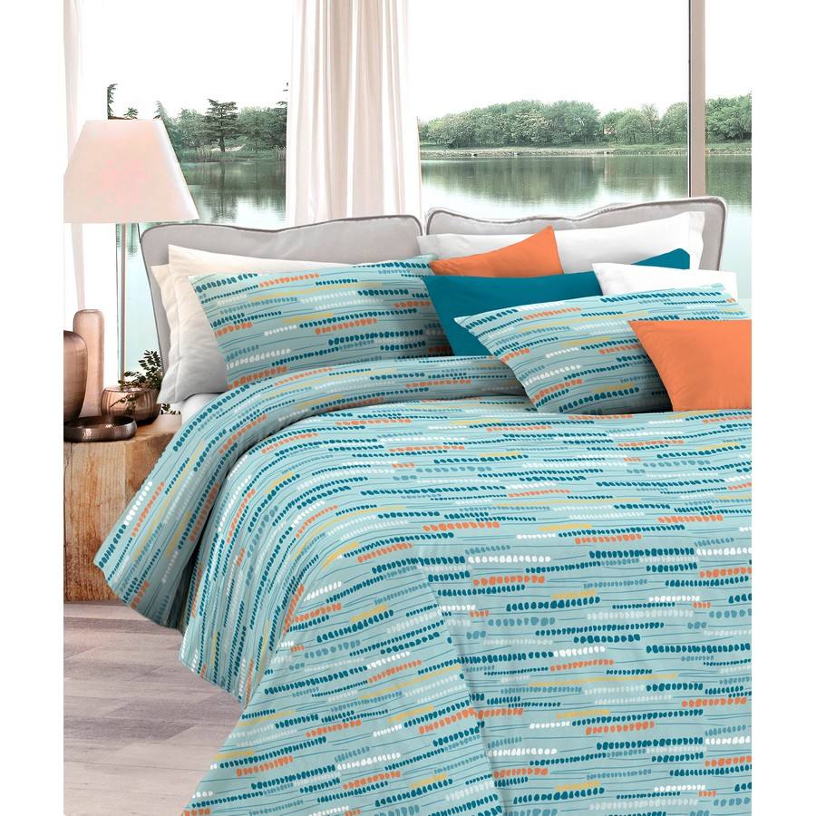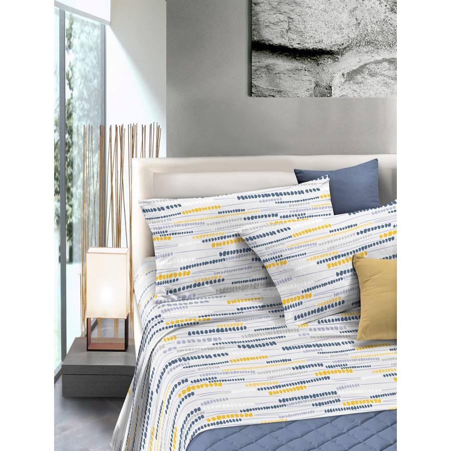 Ensemble de draps en coton 100% de marque blanche, imprimé bleu ciel, taies d'oreiller, drap-housse, drap supérieur, haute qualité, fabriqué en Italie