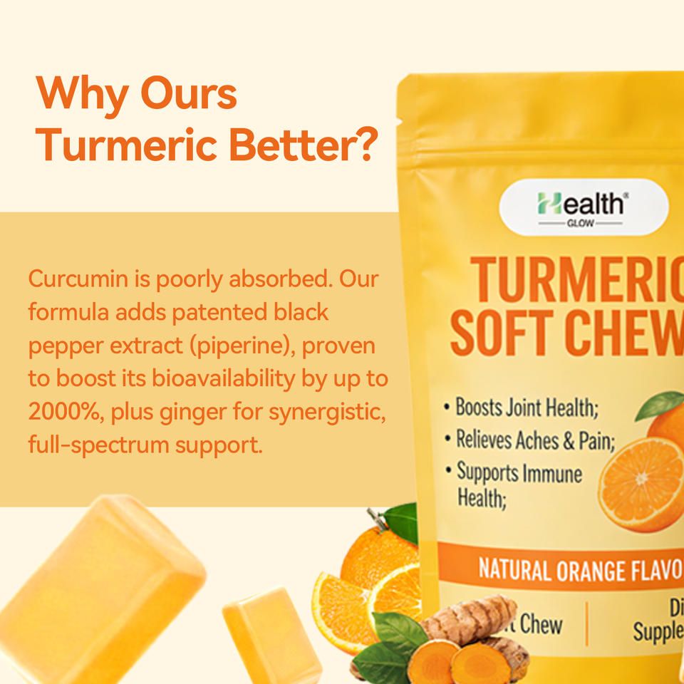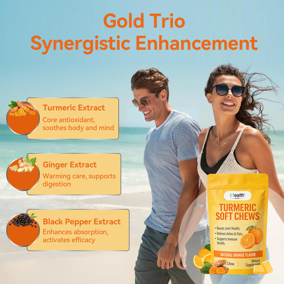 Bonbons à mâcher au curcuma avec gingembre naturel et poivre noir, technologie d'émulsification à base d'huile, marque blanche, pour la santé des articulations