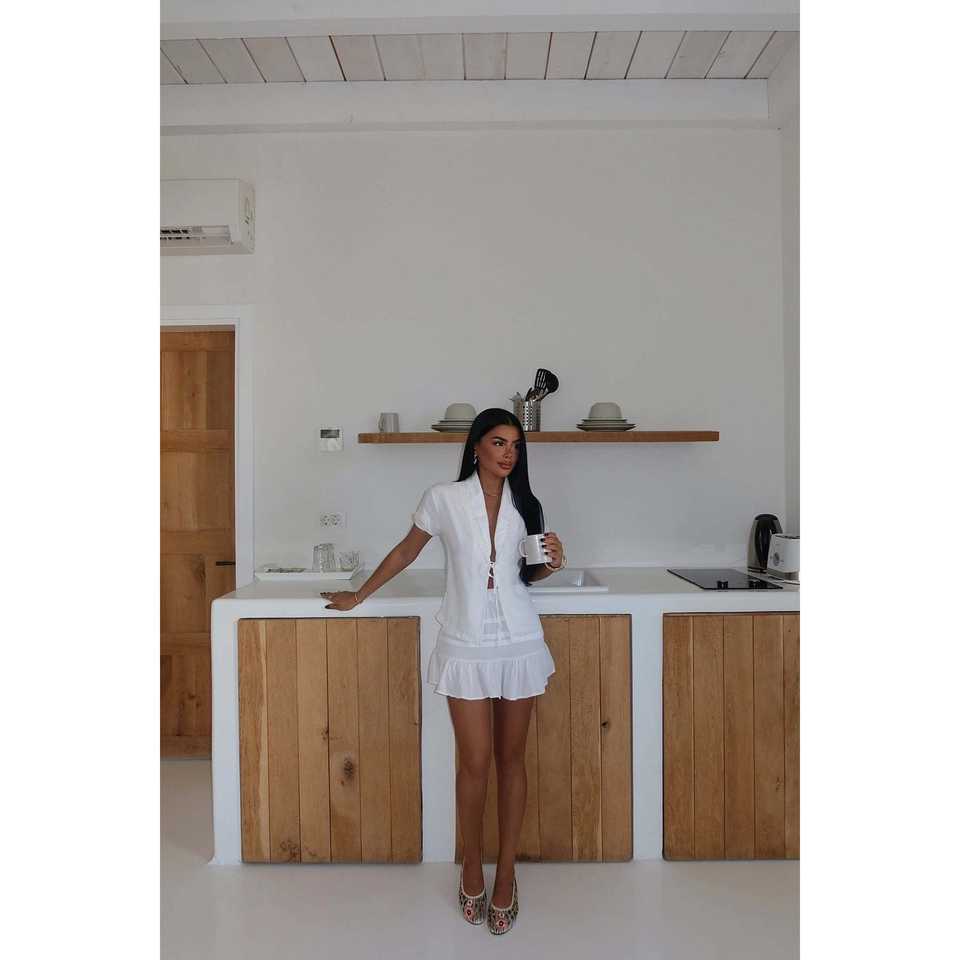 White Lanai 2-Piece Modern Casual Set XS-XL Spandex Knitting Bow Ankle-Length Trousers Washed Technique for Spring/Summer Daily