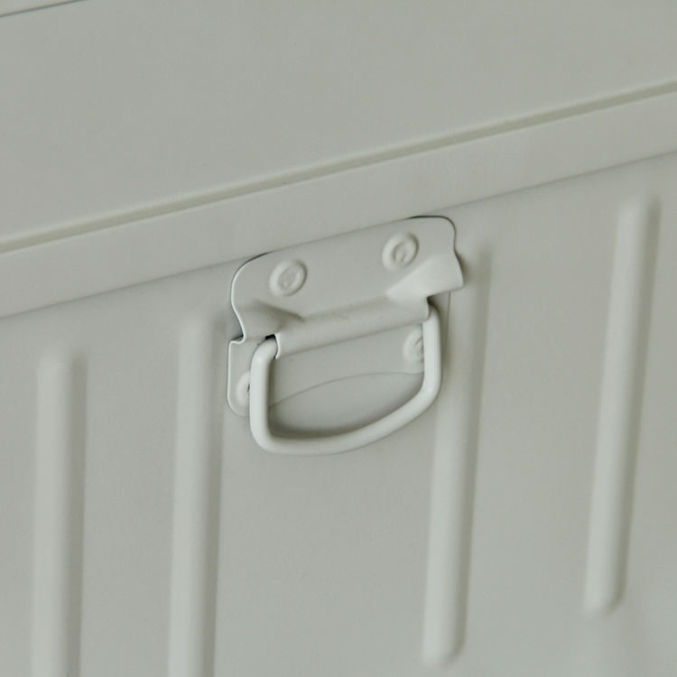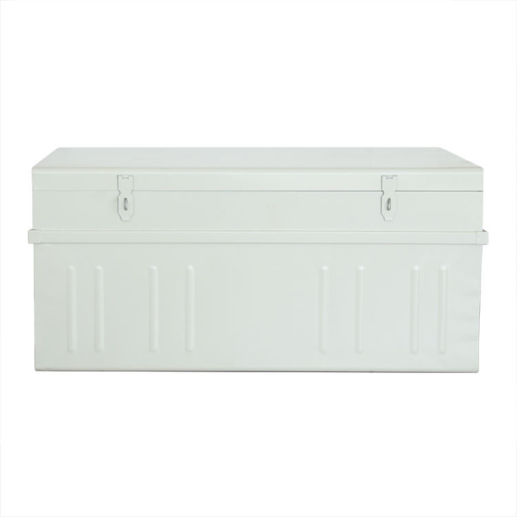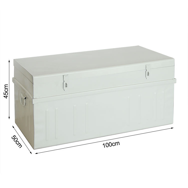 Table basse en métal blanc rectangulaire de grande taille avec coffre de rangement