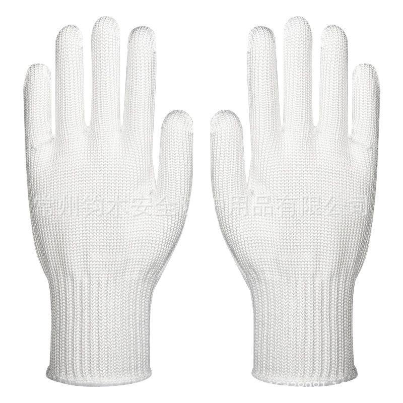 Gants blancs anti-coupure niveau 5, entièrement enduits de polyester, avec fil d'acier, pour la fabrication mécanique, résistants à l'abrasion, vêtements de travail