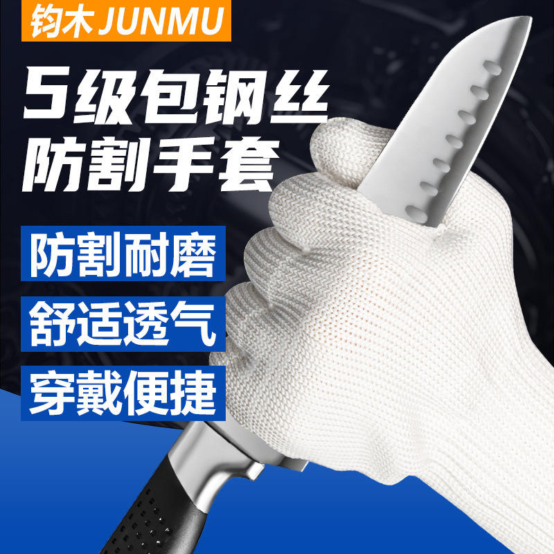 Gants résistants aux coupures niveau 5 en fil d'acier blanc S1037 (L)